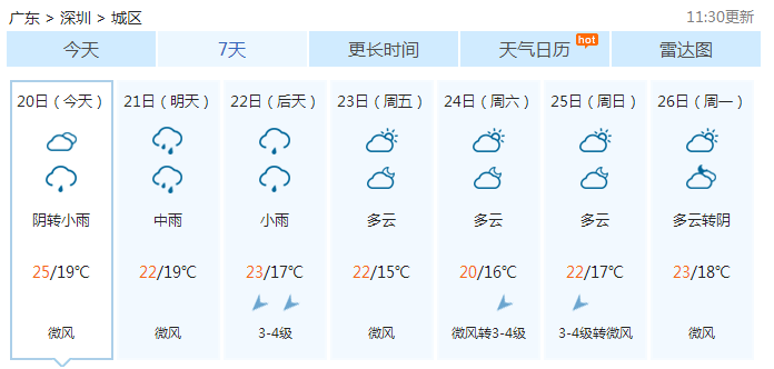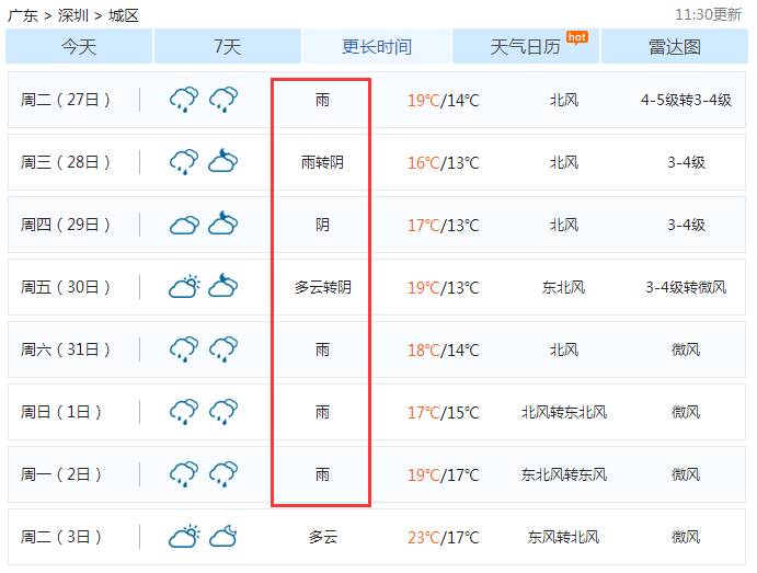 但素!不要高兴得太早,因为下周开始都是阴雨天,下周起深圳开启湿冷模式。