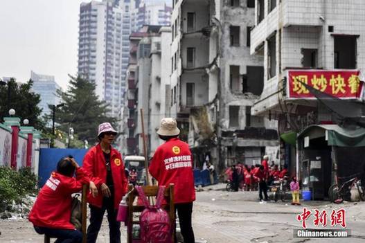 冼村村民身着印有“支持冼村早日复建,早日返回家园”的外套。