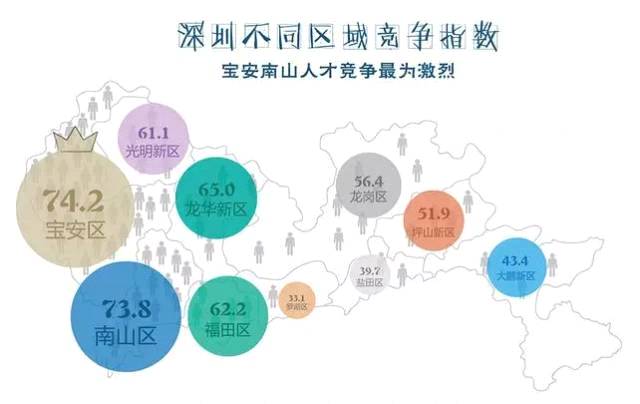 宝安和南山区两个区域人才竞争指数都超过了70%!
