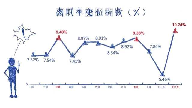 离职率最高的三个月是:12月,3月,9月