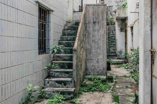 破败的石砖缝隙长满了杂草和青苔