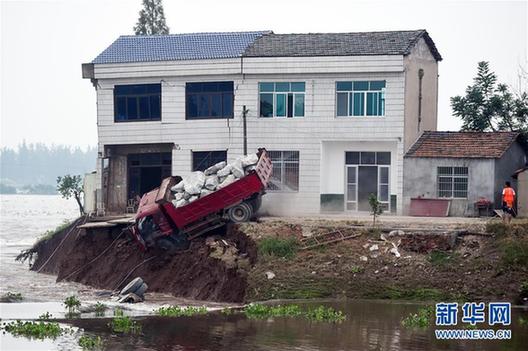 当日上午,湖南省华容县新华垸发生重大管涌险情,红旗闸附近出现溃口。危难之际,十几辆满载麻石的卡车在大堤两边一字排开,以连车带石的方式驶入溃口堵住滚滚洪流。这群驾驶员被人们称为“卡车敢死队”。新华社记者李尕摄