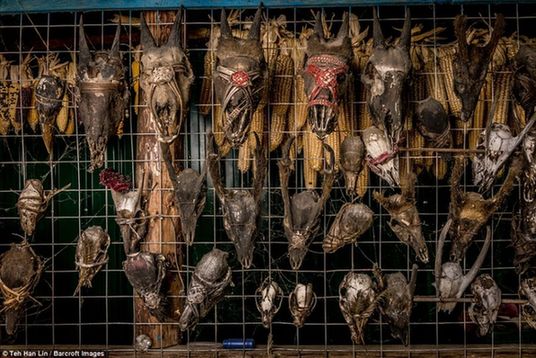 一些部落保留着他们的一些传统,他们将狩猎来的动物头收集起来,并全部放在篱笆墙上。