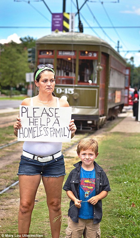这对母子来自新奥尔良,他们目前无家可归,摄影师Mary Lou Uttermohlen称,在看到这对母子之后,她深深地体会到,很多无家可归的流浪者需要的帮助远远不止一个住处而已。