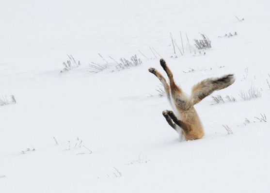 一只倒霉的狐狸在美国的黄石公园内完美演绎了一次倒栽葱,据了解,这张照片的拍摄者Angela Bohlke也凭借这张有趣的图片,获得了2016年趣味野生动物摄影的一等奖。
