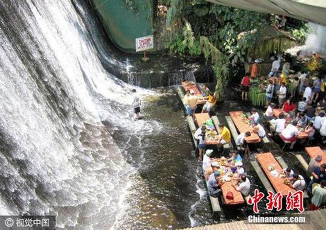 探访菲律宾瀑布餐厅 置身山水间品尝美食 (来源:中国新闻网)