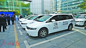 广州日报讯 (记者阮元元摄影报道)昨日,由深圳市市场和质量监督管理委员会主办的“深圳市食品药品执法检测车启动仪式”在工商物价大厦举行。记者在现场了解到,“食品安全快速检测能力建设”作为食品药品安全重大民生工程的重要组成部分,在市政府的大力支持下,购置、改装了24辆食品药品执法检测车用于执行快检任务;并结合危害性较大、社会普遍关注和一线执法等需要选择的快检项目,配置了具有相应检测分析功能的快检设备共114台(套)。根据深圳市各区面积、人口、食品生产经营单位数量等实际情况,每区配备1~3辆快检车。