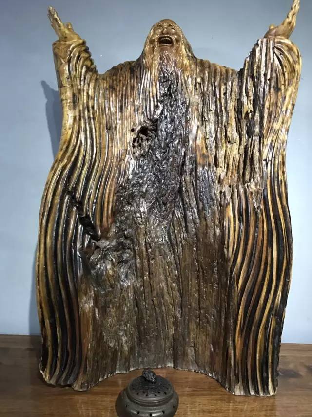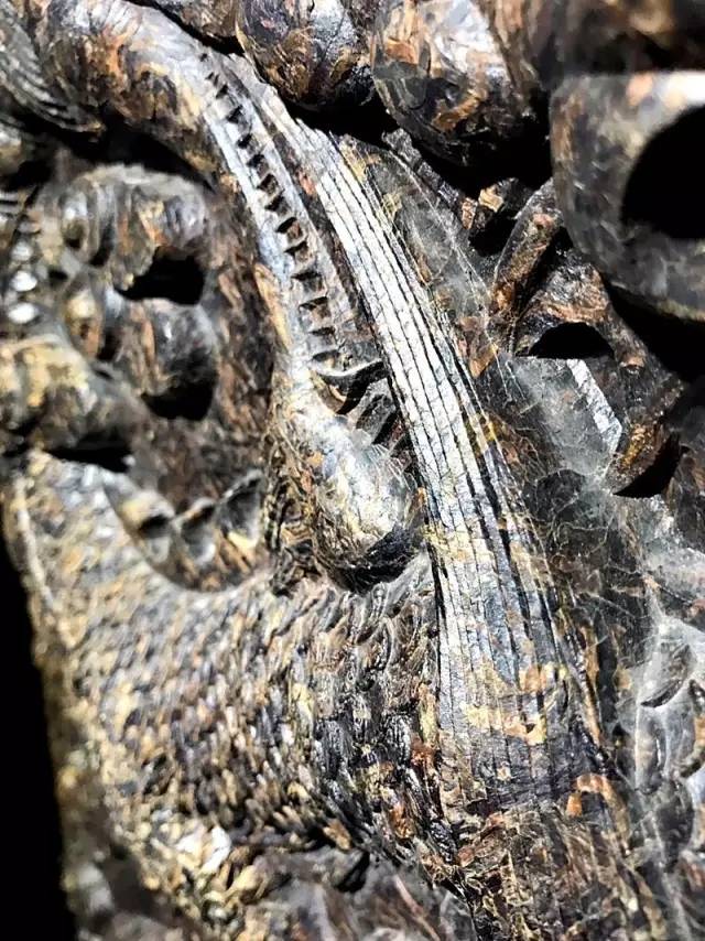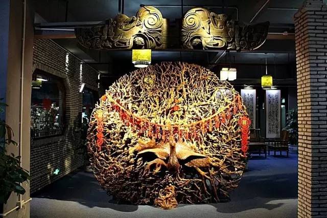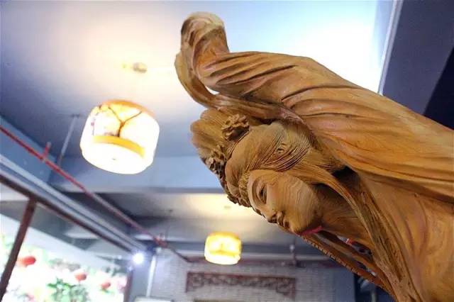 门口摆了个霸气侧漏、形似凤凰的根雕作品,羽毛纹路清晰可见,实在忍不住,边惊叹边上手摸一把。