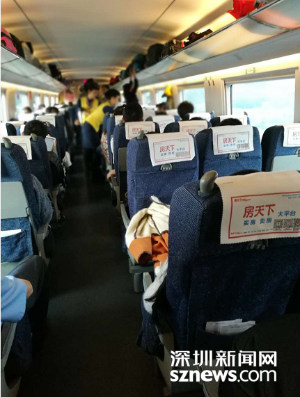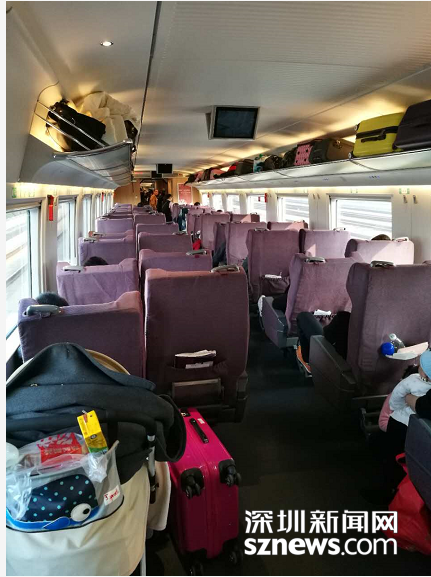 这是一等座车厢,座位和间距宽大不少,比较合适带宝宝的家长乘坐。