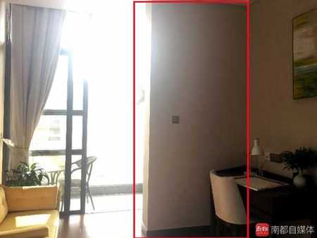 (在一不到30平米的户型内,一面墙挡住了大半个阳台)