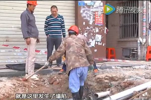 附近的街坊告诉记者,发生塌陷时,同乐河正在进行河道施工,铺设排污管。他们怀疑,河岸坍塌,可能是由施工引起的。