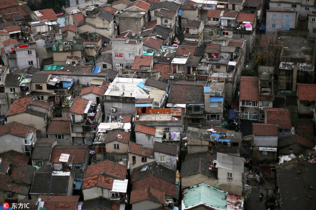 张桥居民区目前住户有约2100户,房屋分布密密麻麻,而与棚户区一条沙泾港之隔的高端楼盘均价已经接近8万元每平米。