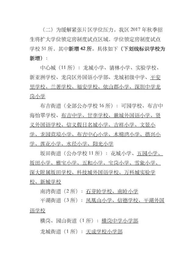2.学位锁定制度学校扩大至51所(其中下划线的42所学校为新增,将从2017年起记录锁定,2018年升学的家长在办理租赁前记得查询锁定哦);