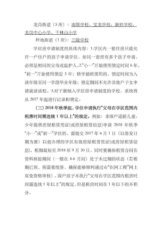 5.2015年起,我区在部分学区严格实行学区房锁定政策,涉及的学校和具体规定请各位家长登录基础教育科网站查看“关于南山区住房学位锁定的温馨提醒”。