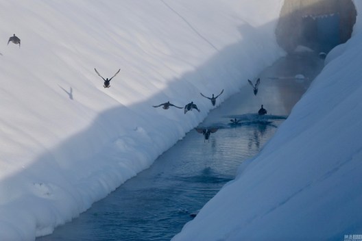 早上,从三号矿坑抽出的地下水,吸引来了一群野鸭。图/视觉中国