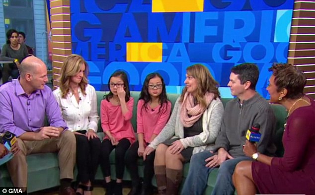 被2个美国家庭收养的中国孪生姐妹首次见面