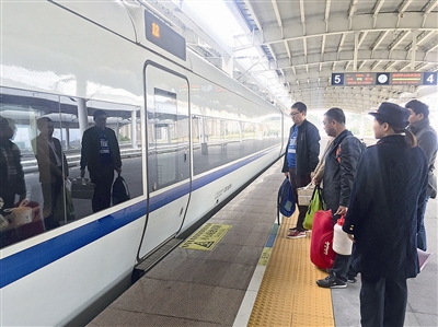春运期间,厦深铁路坪山站乘客有序乘车。