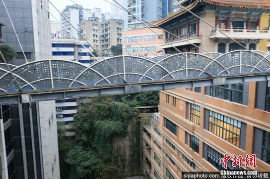 “悬空天桥”离地68米 仅用8根绳承重