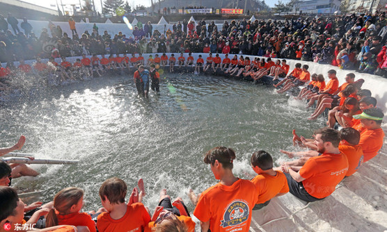 韩国冰雪节超百万人参加 民众赤手抓鱼