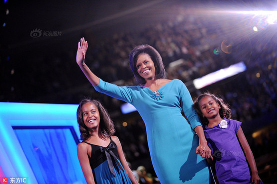 奥巴马入主白宫八年,他从一位头发乌黑、脸部紧致的帅大叔,变成了如今白发掺杂、额纹显露的苍老模样。而他的两个女儿经过八年的成长则越发出落地亭亭玉立,从最初的两个小屁孩长成如今的大姑娘。当地时间2008年8月25日,米歇尔和两个女儿在民主党全国大会上。图/东方IC