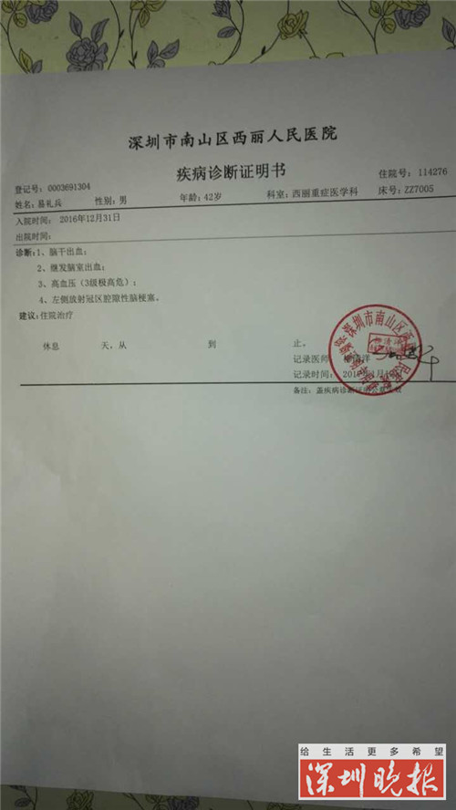 建了新房子,夫妻二人回家的渴望更加强烈。2016 年 12 月 31 日,当童新娇幻想着将女儿和年事已高的两位老人一起接到新家,开开心心过年的时候,却突然接到丈夫同事打来的电话——易礼兵在工作时突发脑溢血,病情危急。童新娇赶到医院,医生直接下发了病危通知书,在重症监护室内,她看到平时生龙活虎的丈夫静静地躺在那," 像睡着了一样 ",头上插满了管子,连呼吸都得依靠呼吸机。医生告诉童新娇,易礼兵的脑干出血量约有 20 毫升,随时会有生命危险,救活的希望非常渺茫,就算救活了,也很难恢复意识。这一消息犹如晴天霹雳,震得童新娇险些昏倒,在大哭一场后,她终于镇定下来对医护人员说:" 我不敢想象全家失去他会怎样,就算希望渺茫我还想救他,我不会轻易放弃。"