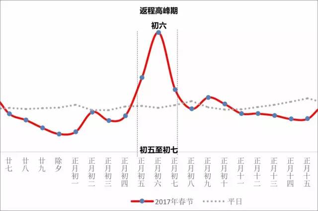 节后返程高峰期是初五、初六和初七(上班第一日),其中正月初六为全国高速拥堵最高峰,而从正月初八(上班第二日)开始全国高速拥堵下降并逐渐恢复到平日拥堵程度。