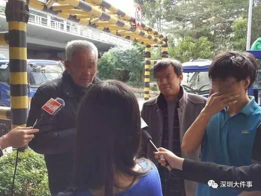 杨国中的父亲(左)与儿子相认后不住掉眼泪。