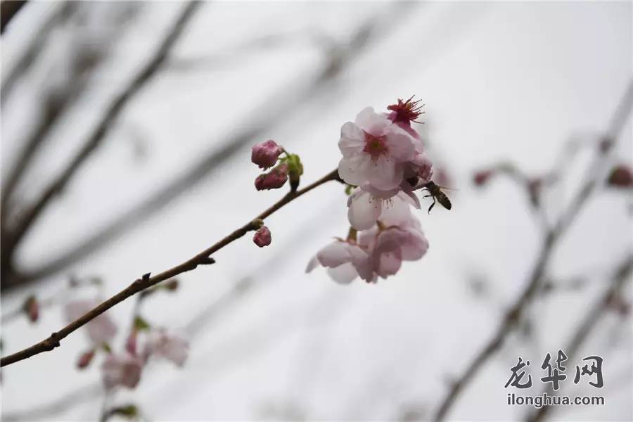 清香的樱花引来蜜蜂采蜜。