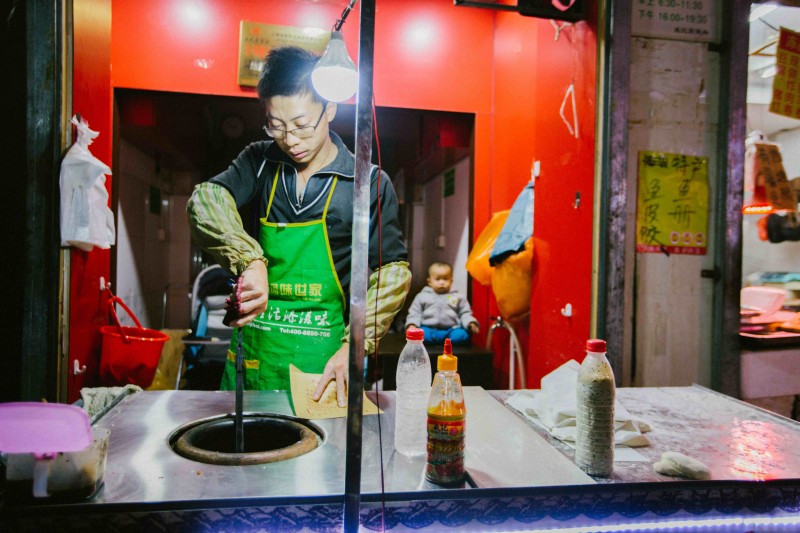 “我来自湖南。过年回去啊,应该要等过完年才开档了。”下着毛毛细雨,寒潮的夜里他独自带着孩子继续忙碌地不停地和面“一天嘛,中午开始到晚上的话大概要做300多个锅盔烧饼。”