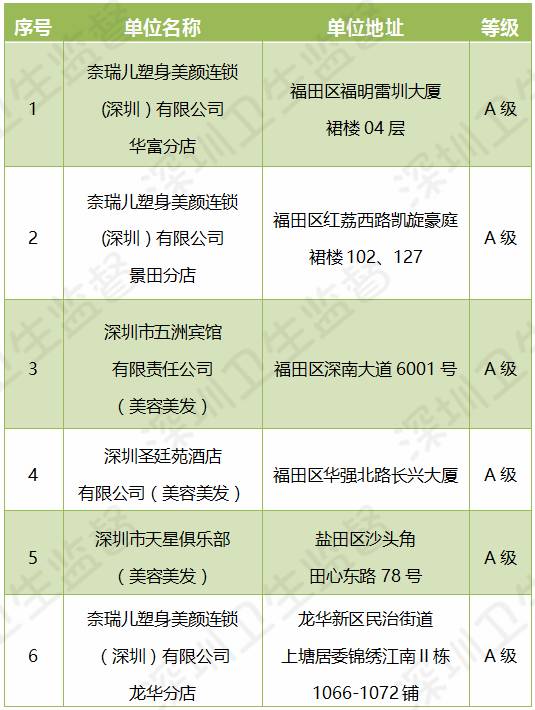 深圳住宿、沐浴、游泳、美容美发场所卫生等级公开!(附A级名单)