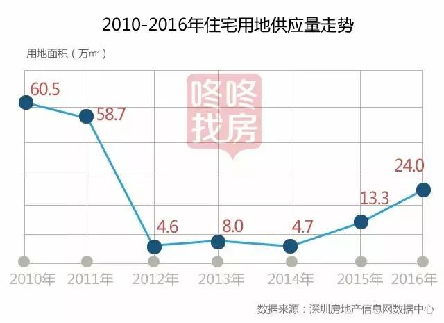 近年来深圳楼市高速发展,土地问题日益突出,数据显示,2010-2016年深圳住宅用地的供应量仅为173.8万平方米,其中,2016年深圳住宅用地供应量为24.0万平方米,远远不能满足楼市的发展需求,可喜的是,近年来城市更新用地成为深圳楼市的供给主力,有效缓解了市场供应的压力和高房价的压力。