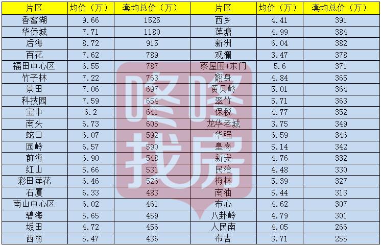 就新房而言,2016年深圳的套均总价有点高,和豪宅入市房价被平均有一定的关系,根据我们统计的成交数据,二手房套均总价在440万的样子,抽样调查了40个片区最近的成交价位,香蜜湖和华侨城去到了千万以上,后海全年都是在900多万徘徊,破千也是分分钟的事情。