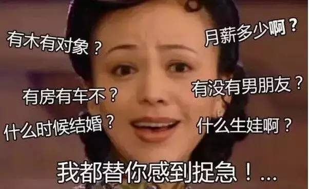 回家过年的日子越来越近了,想想就很激动呢!可是总有七姑八姨外加三叔360°无死角逼问,在哪儿上班、什么工作、能挣多少呢?买房子了吧、有对象没、准备结婚吗?