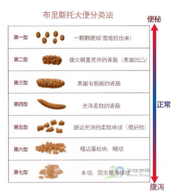 医学上有一种布里斯托大便分类法,它将大便分为7类。(图自39健康网)