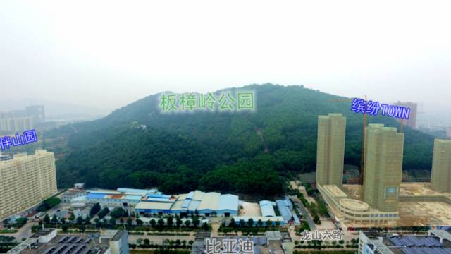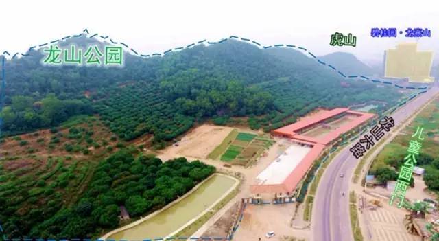 儿童公园对面的龙山与虎山也在建设之中,远处的楼盘是碧桂园·龙熹山,于上月开盘。