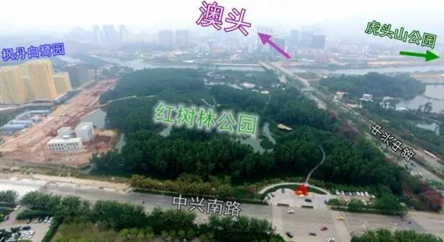 红树林公园设有观景平台、廊架、观鸟亭以及长约800米的生态栈道等景点。大片大片的红树林交织成一个美丽的水上森林。