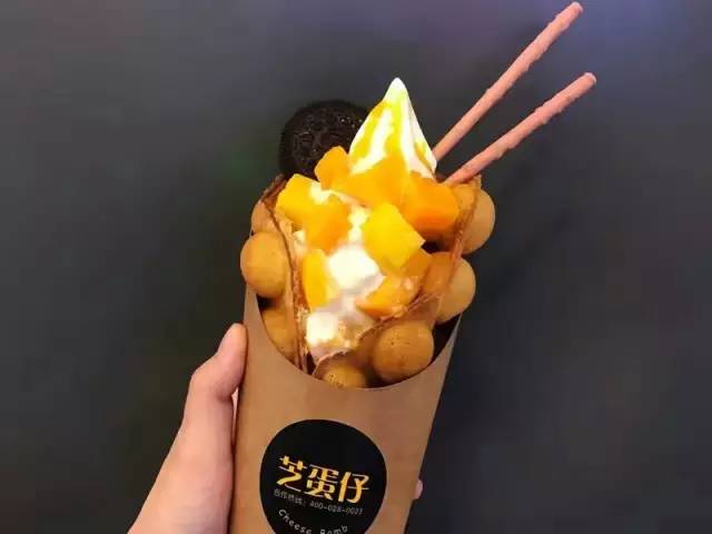 鸡蛋仔当然是必须不可少的啦!!但是这次介绍点不一样的!!少女看见会尖叫的冰激凌鸡蛋仔~~有芒果味草莓味奇异果味,可惜草莓太好卖只能买芒果咯!!