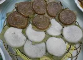 咸的和甜的两种,甜的一般以花生糖等作馅,咸的有用萝卜、眉豆等作馅。下面一般用树波萝的叶子来垫着,吃的时候就不会太烫手啦,而且还能闻到 叶子的清香。
