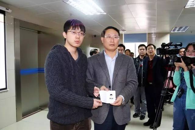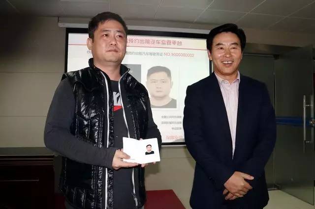 市交通运输委于宝明主任为考生曾浩民颁发了深圳市第一张网络预约出租汽车驾驶员证。