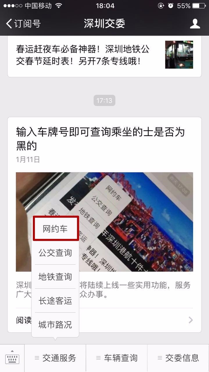 参加网约车从业资格考试的用户,可通过公众号菜单“交通服务”——“网约车申请”,进入 深圳市网络预约出租汽车监管平台,在“政策法规 ”栏查看下载大纲及题库;同时,考生还可在监管平台“考试中心”栏目进行区域科目考试模拟练习,通过提高自身相关知识及服务能力顺利通过考试。