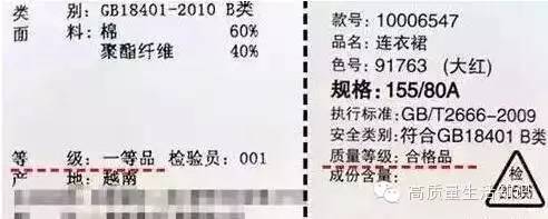 衣物的等级分为优等品、一等品、合格品,等级越高,色牢度越高。一般情况下,市面上一等品和优等品较少,所以,衣服标签上的等级标注至少要是合格品。