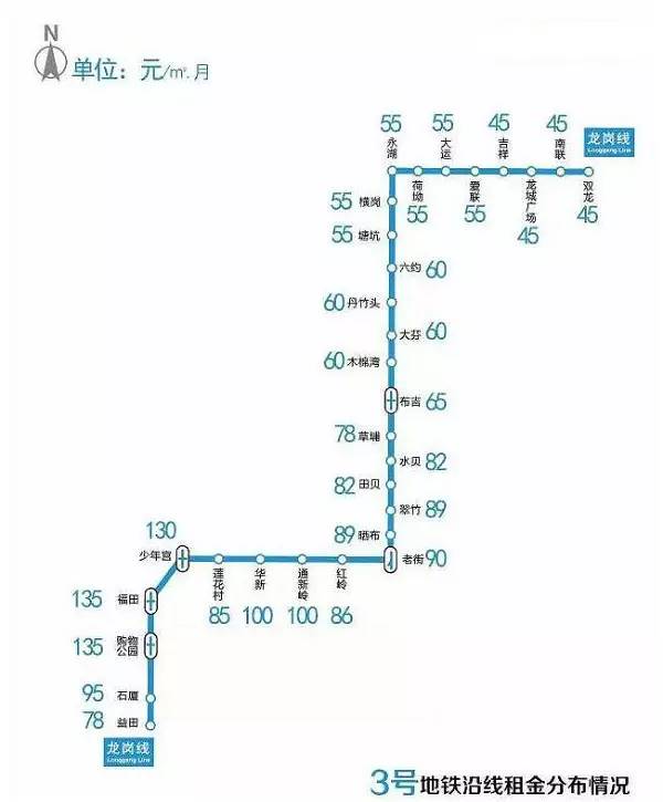 茶光、珠光,这两个站最便宜大概在60元/㎡.月