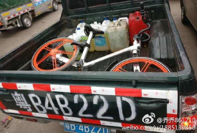 网友"乔乔861210"1月21日在高速上拍下一组照片,一辆共享单车被粤B皮卡放在货箱内,不知拉往何处,该车夹在回家过年的车流中极为显眼。该网友配文说:"过年回家的高速上竟然看到了这个,不经感叹中国人的素质。"(来自:深圳交警)