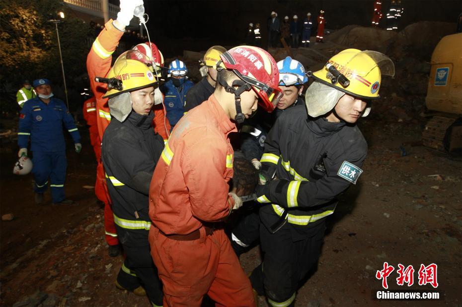 南漳突发山体滑坡掩埋一酒店部分房屋 救援现场曝光