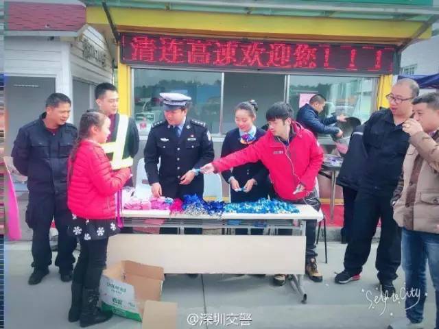 同时,粤北探路组深圳交警蜀黍们在清连高速浸潭收费站开展七省(广东、广西、湖南、江西等)交通广播春运视频大直播,深圳交警蜀黍们和深圳交通频率参加现场连线,连线中介绍了目前北行京港澳、乐广、清连等高速出省路况,从高速公路轻微事故处理、交通文明出行、后排乘客系安全带等方面开展了交通宣传!深圳出发的同学们,一定要把深圳的文明交通行为传播到全国各地哦…