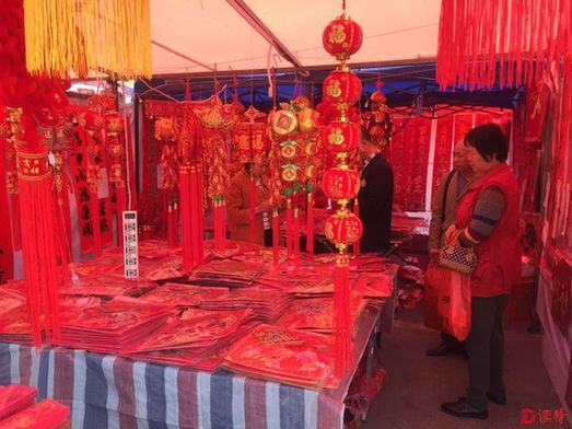 在各花市会场,商家除了售卖年花年桔,还有不少售卖春联等节庆用品。