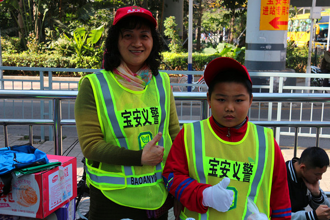 在宝安汽车站大楼一侧的义工点上,温秋平忙得团团转,耐心的叮嘱着义工们服务事项时,又突然被打断,忙着回答一位问路的乘客。温秋平是宝安义警组组长,自从2008年加入义警以来,这已经是她在宝安汽车站服务春运的第九个年头了。