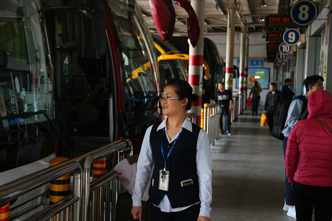 “春节进出车辆多,有些车进不来有些又出不去,我们的工作就是调度车辆有序进出。”在客车停放区域,小刘正在一辆辆客车间来回跑动,一边安排车辆进出站一边还要引导乘客上车,作为宝珠专线一名调度人员,她已经有多年没回家了。“在车站工作7年,只有两年是在家过年的,其他几年都是和车站内的乘客一起跨的年。”