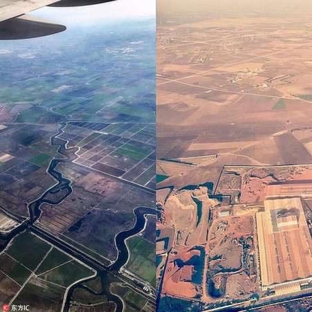目前为止,他们的作品包括拼在一起的山峦、钱、巴士和早餐等等。左图为科罗拉多,右图为墨西哥。