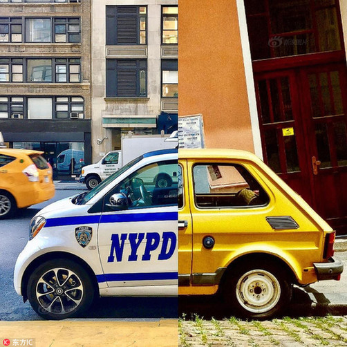 于是,当他们相隔千里之时,为了能够联系在一起,他们想出了一个点子,就是将各自旅行中拍摄到的相似照片拼接在一起。左图为伦敦,右图为纽约。